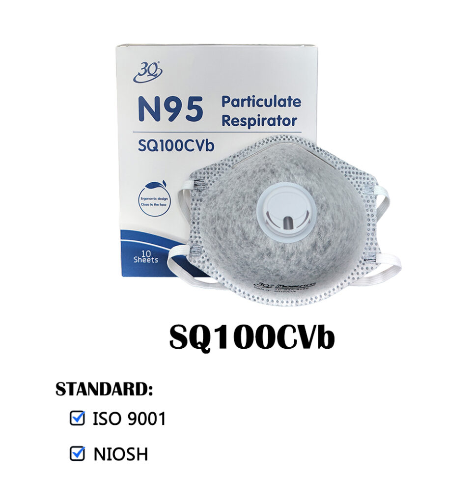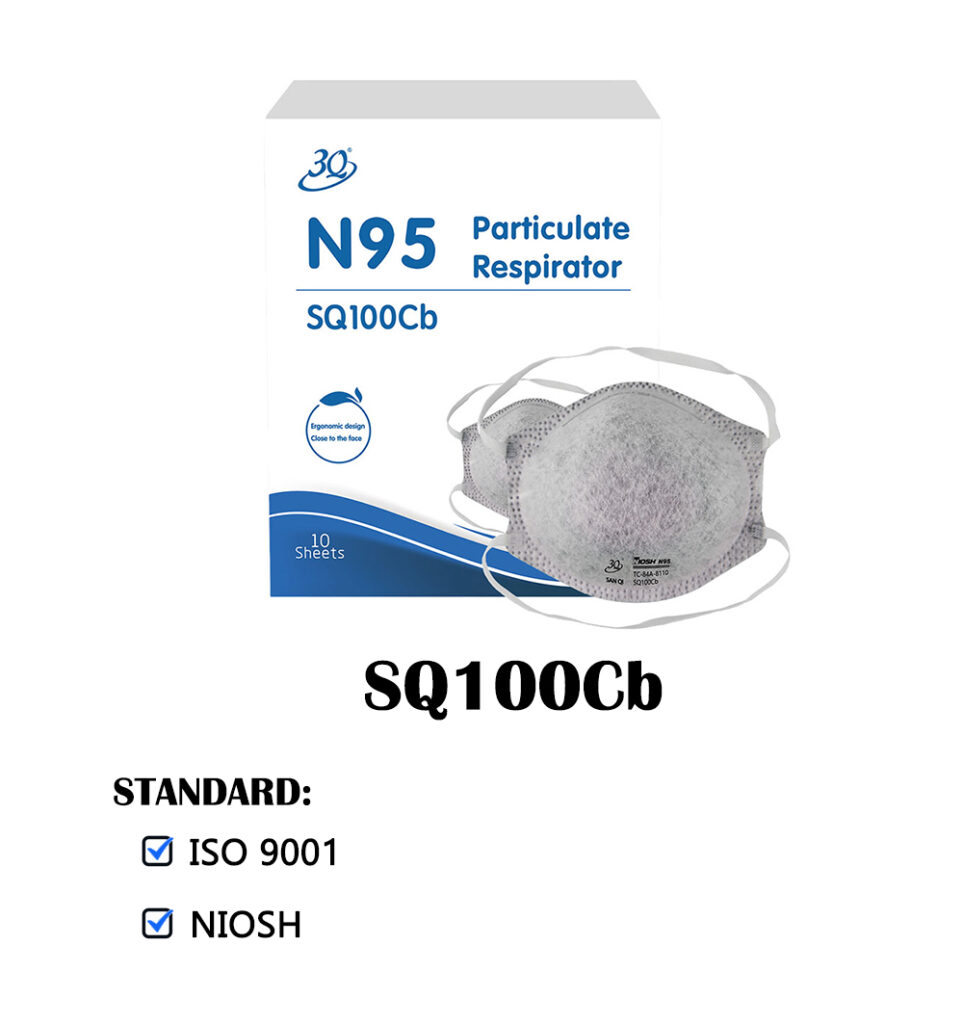 The SQ100Cb Carbon Dust Mask is designed to protect against particles such as smoke, dust, and other non-oil-based fumes from wildfires, vehicle exhaust, coal, iron ore, wood flour, pollen, pet dander, mold spores, allergens, and other solid particles. It is a NIOSH approved disposable N95 mask with a filtration efficiency of at least 95% against certain non-oil-based particles.