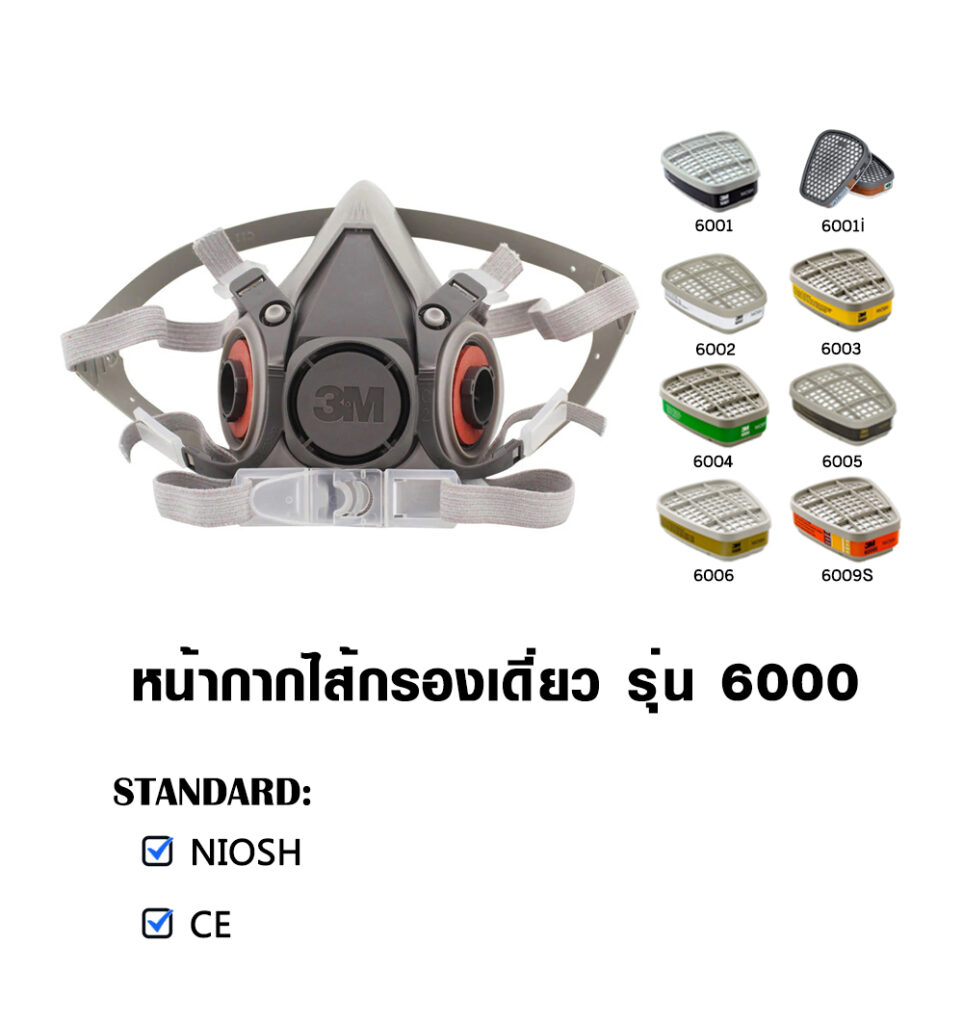 Protects against gases and vapors, dust and metal fumes, dust and vapors, chemicals. Suitable for the size and shape of Asian faces. Comfortable with soft materials, light weight, the mask strap can be adjusted to fit the face. The mask material is designed for use in hot areas, providing a tight fit while wearing. The inhalation and exhalation valves are large, making it easy to breathe. The mask can be unhooked and looped onto the user’s chest.