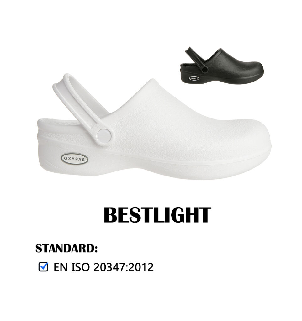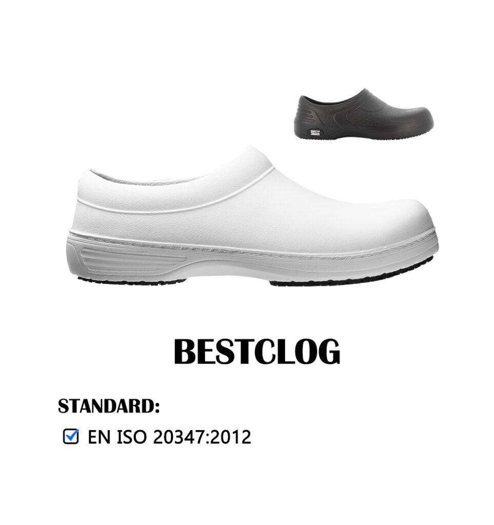 Non-slip rubber shoes with heel, the lightest safety shoes, composite toe (supports 100 joules), suitable for clean rooms, kitchens, food processing areas. The inside of the shoes is lined with EVA fabric, which helps absorb moisture and prevents mold.