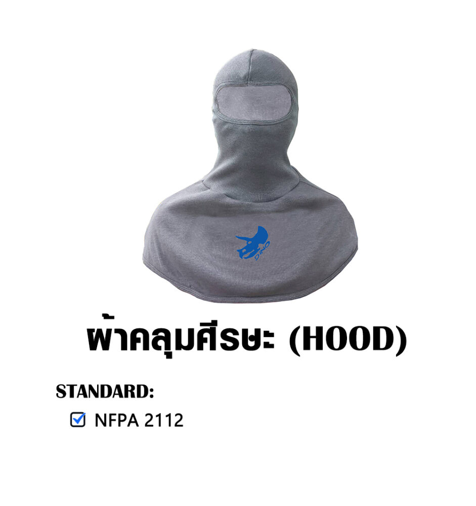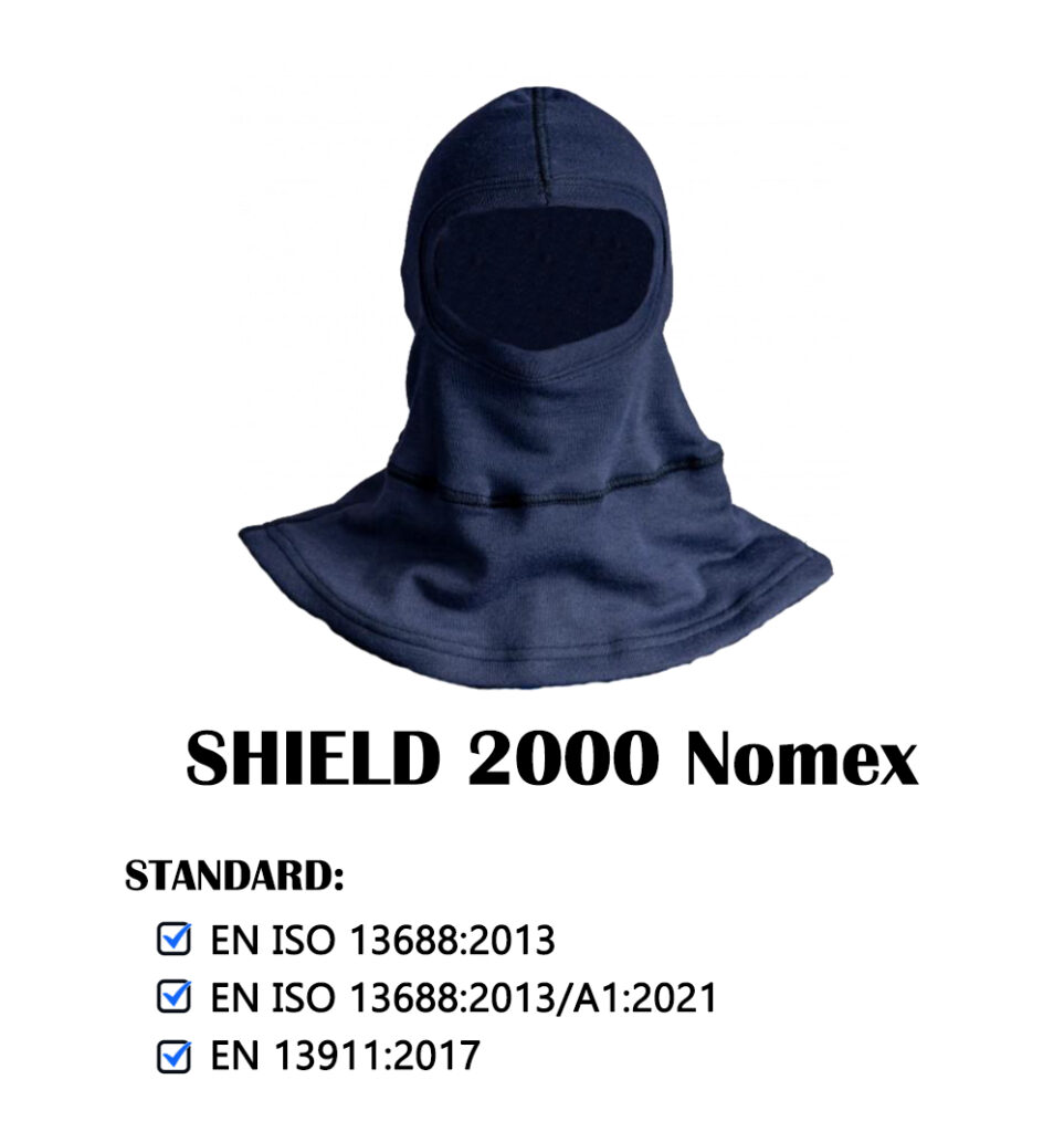 For covering the head, used in firefighting, rescue and industrial plants. The fabric can prevent fire, is not flammable and is heat-resistant. It is breathable and can be used with firefighting suits, breathing apparatus and firefighting helmets.